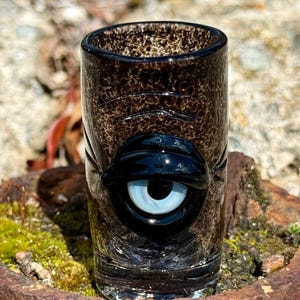 1.96 borosilicate glass marble. Emerald Green and Aqua dichroic and Experimental Green in a vortex design. Black backing with Jade Green, experimental green and galaxy black dot stack pinwheel design. Comes with display stand