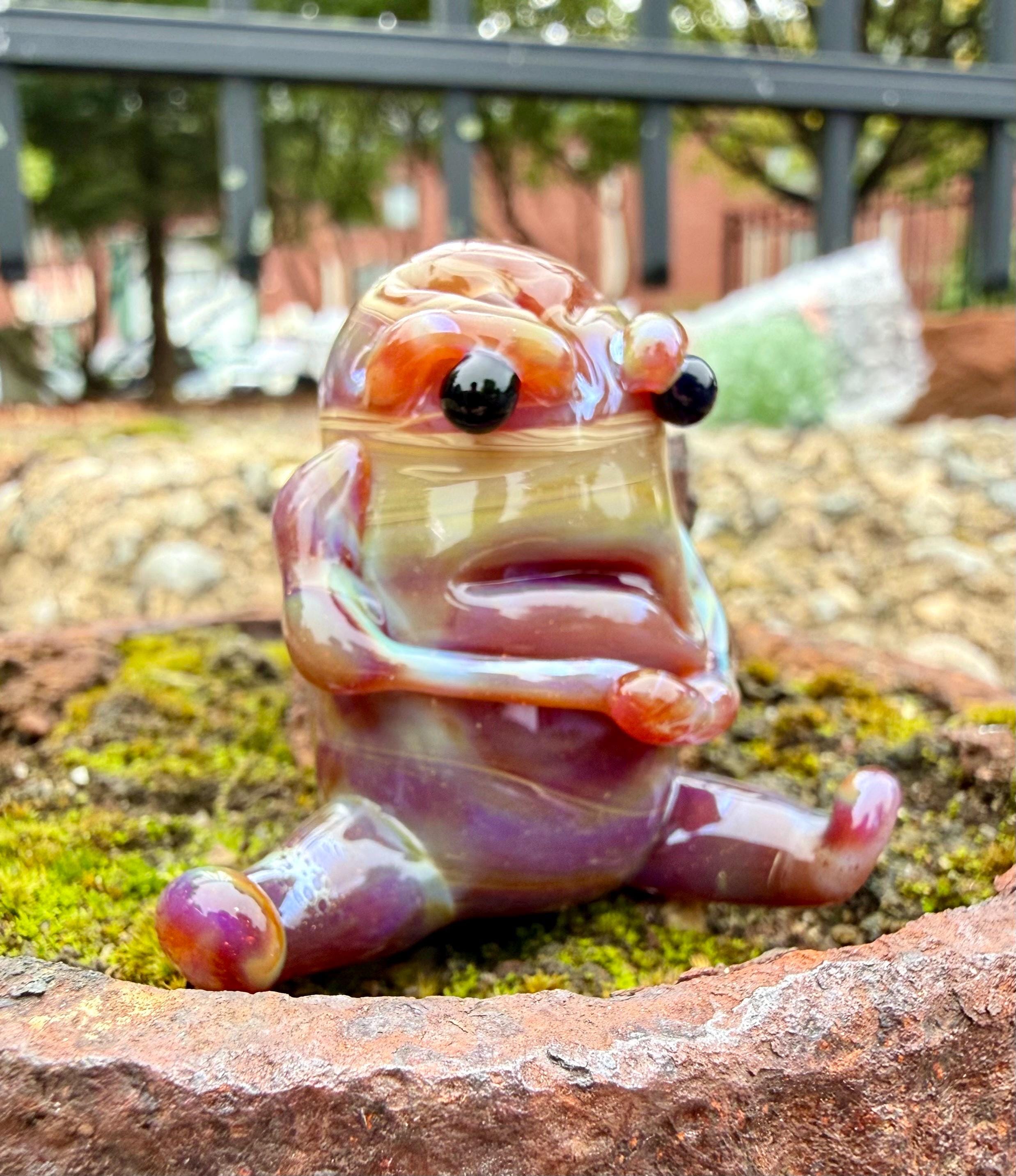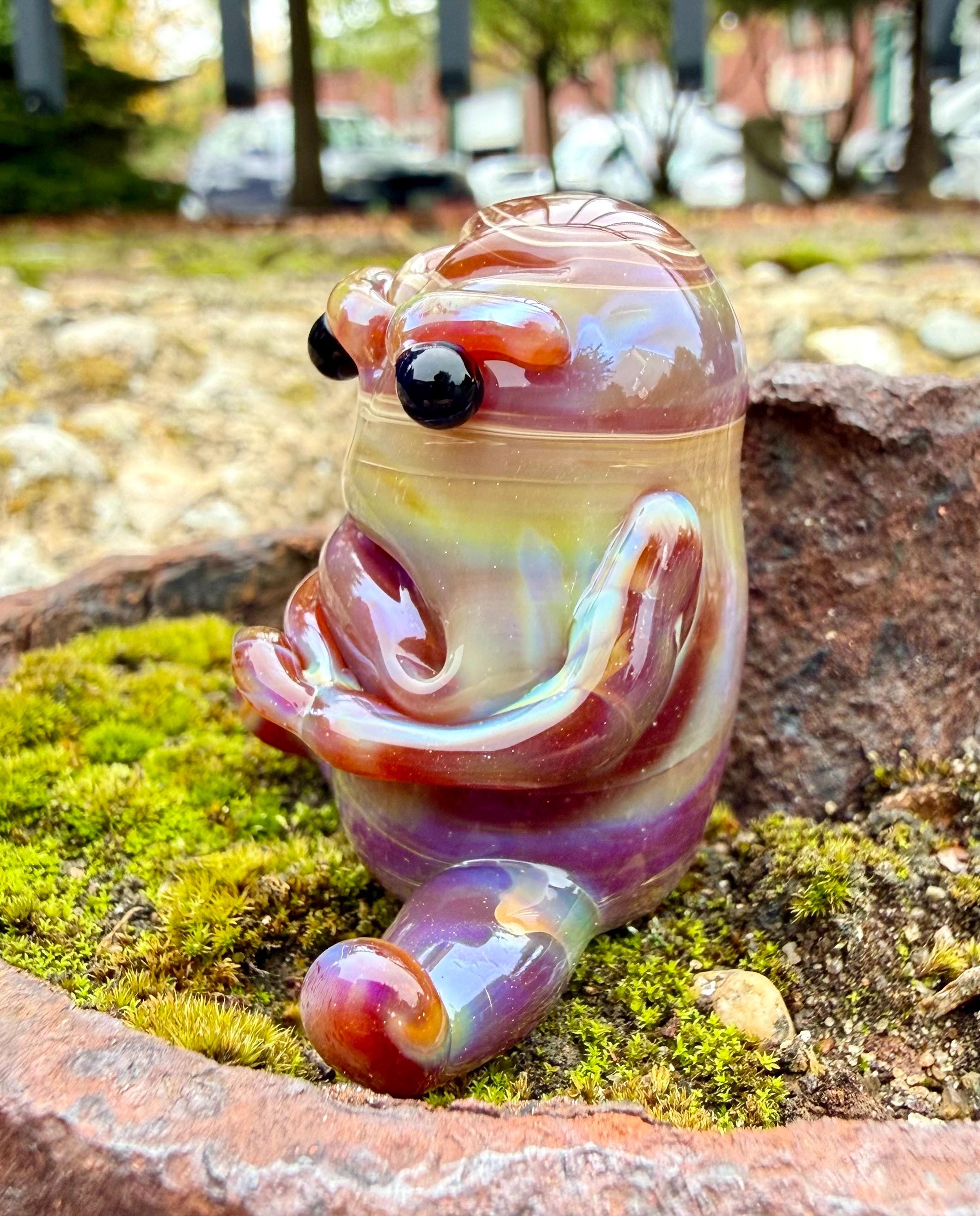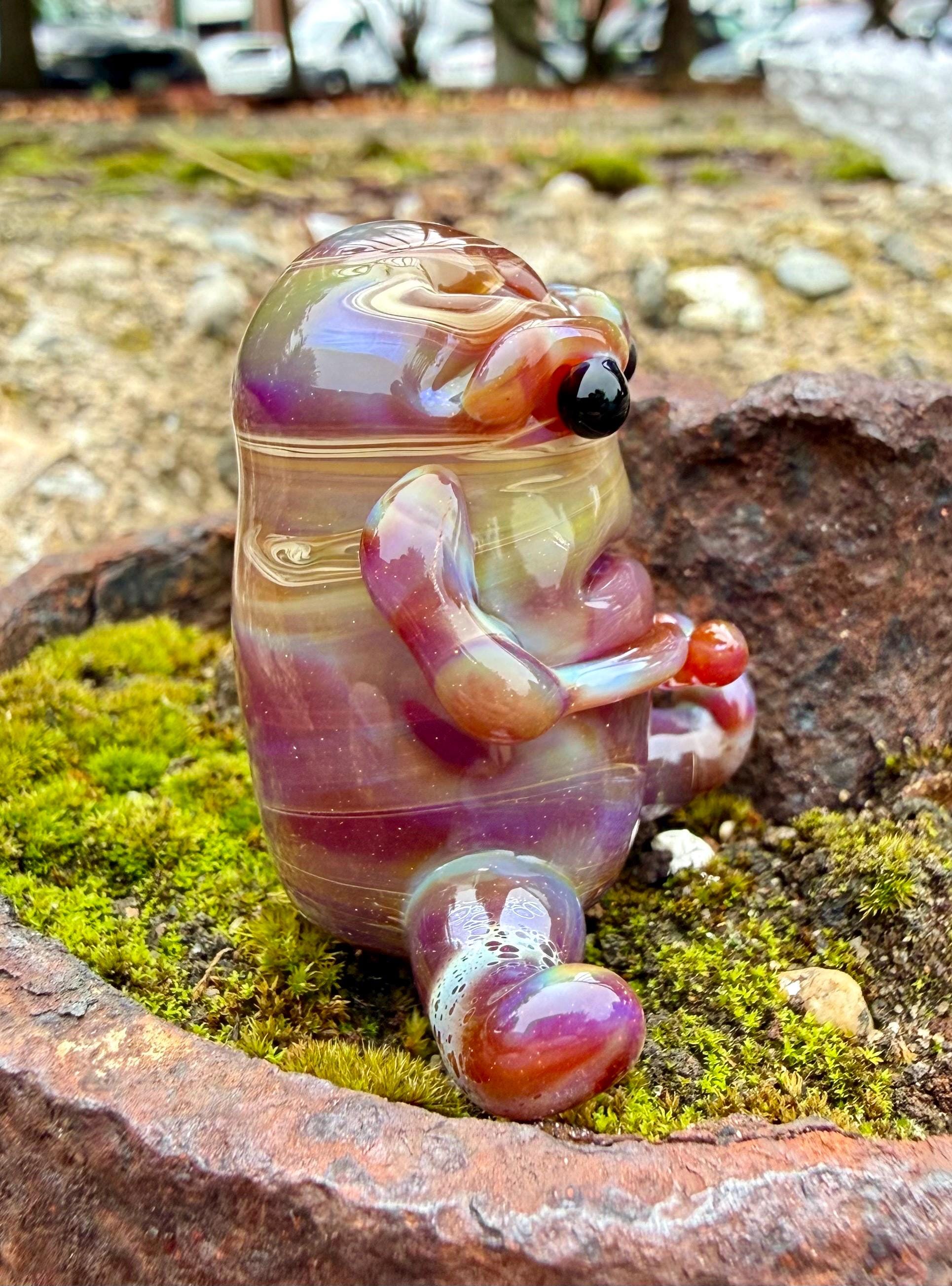 1.6 inch tall and 1.7 inch wide borosilicate glass figure.