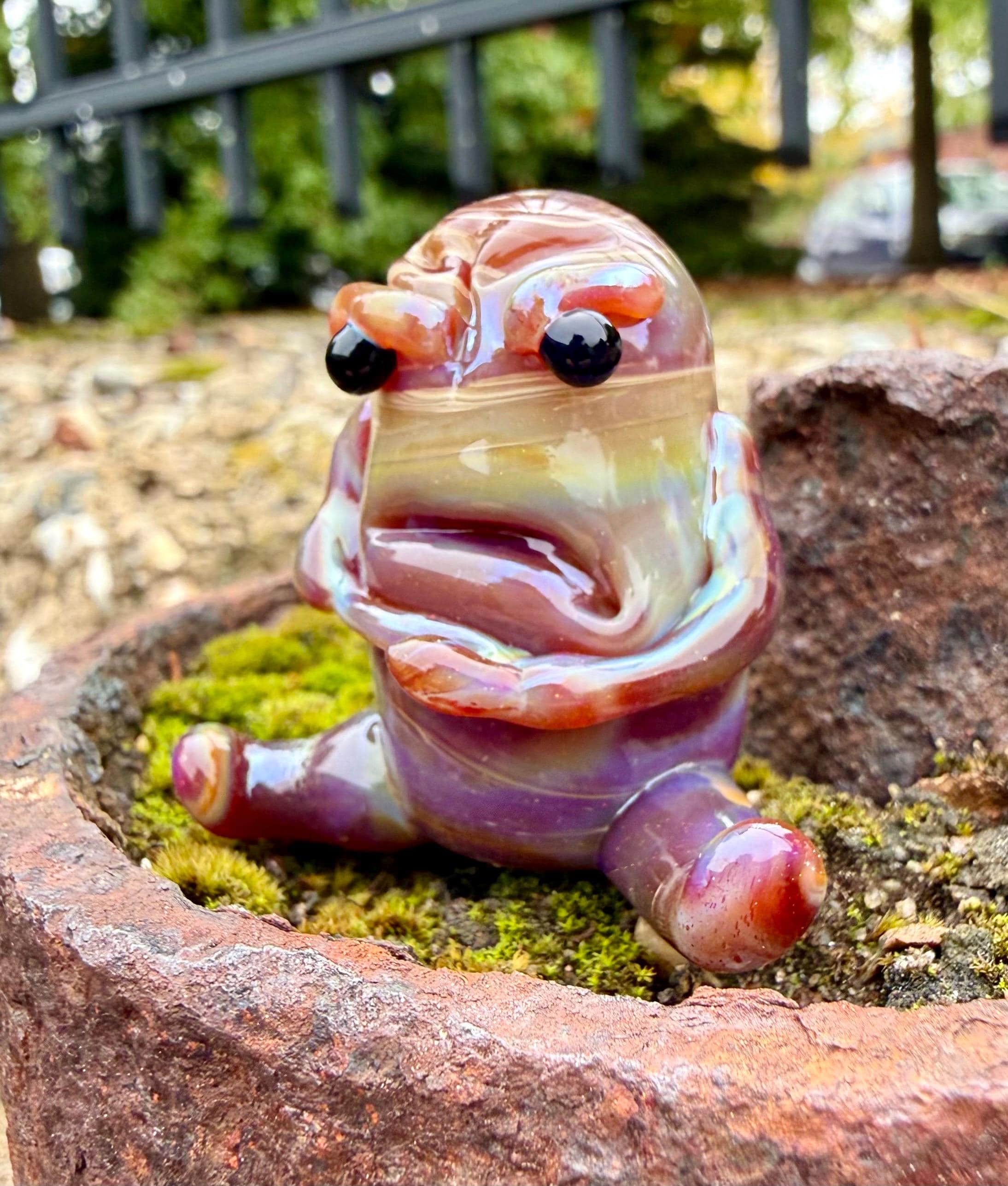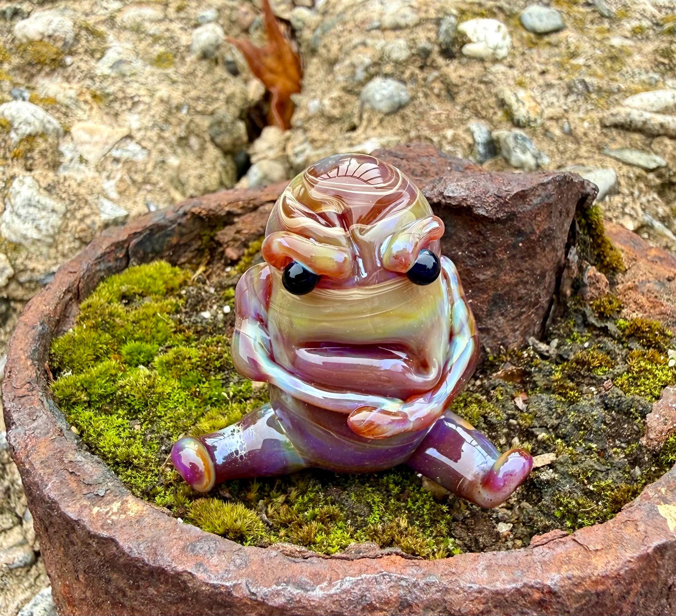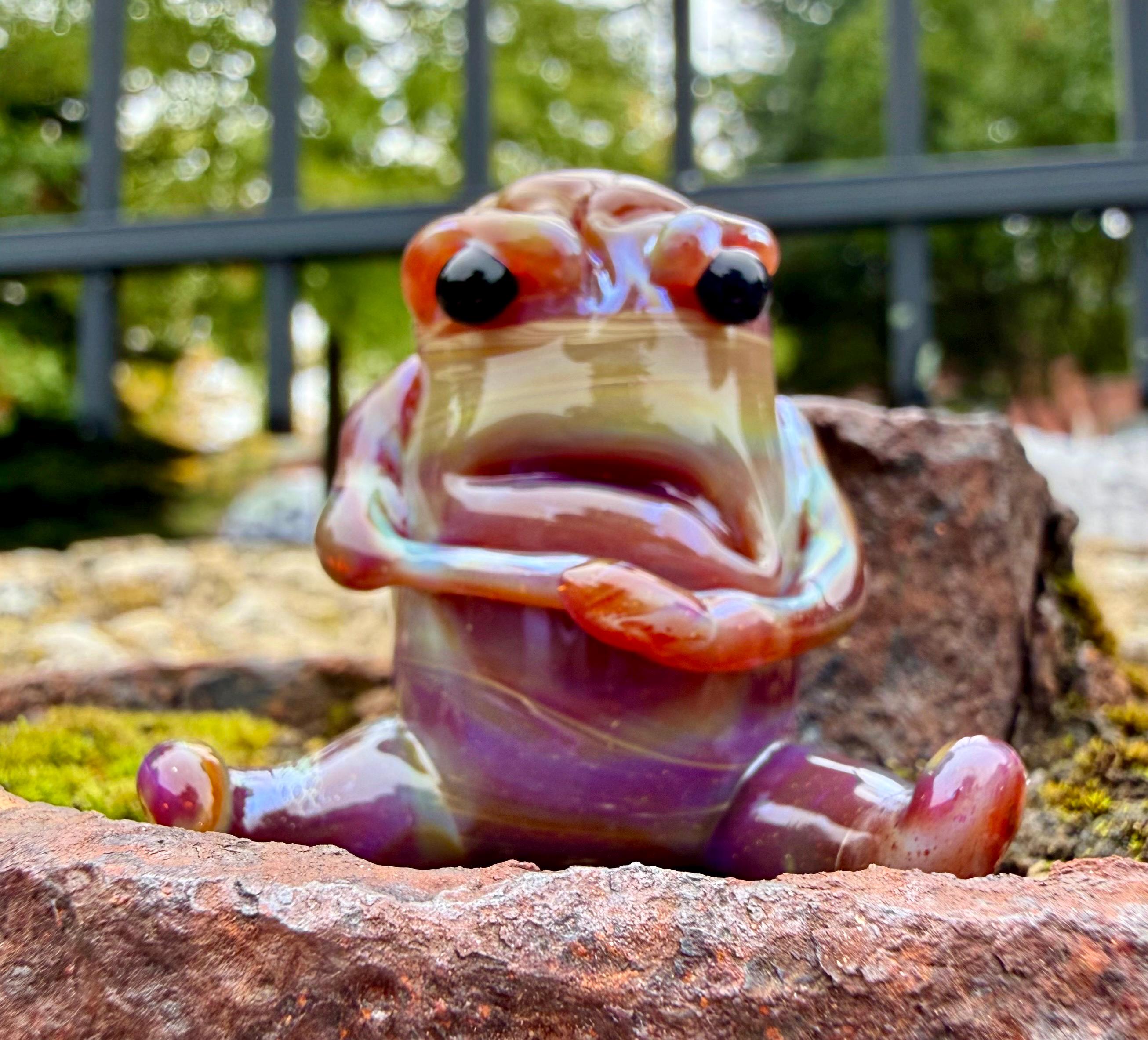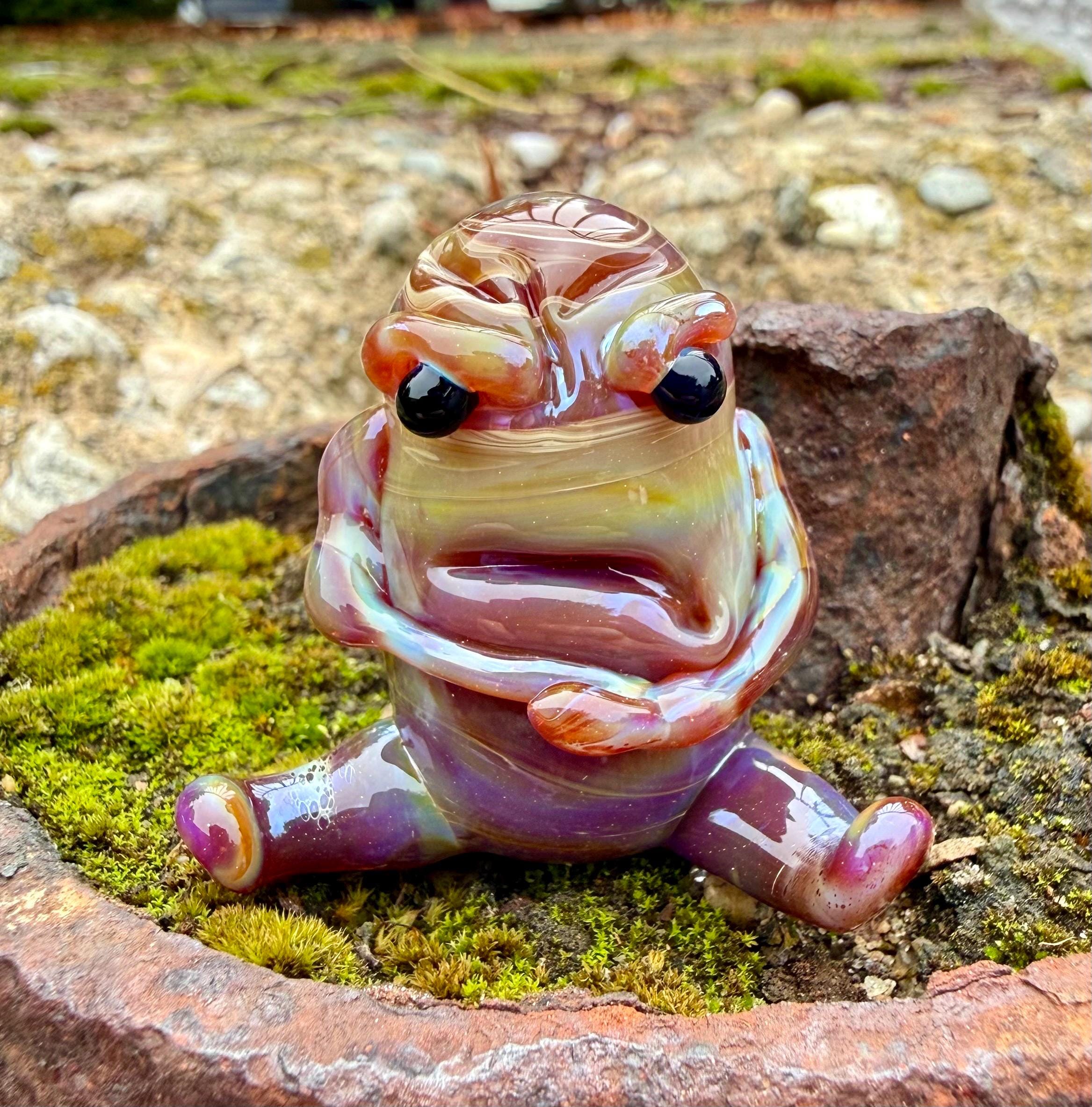1.6 inch tall and 1.7 inch wide borosilicate glass figure.