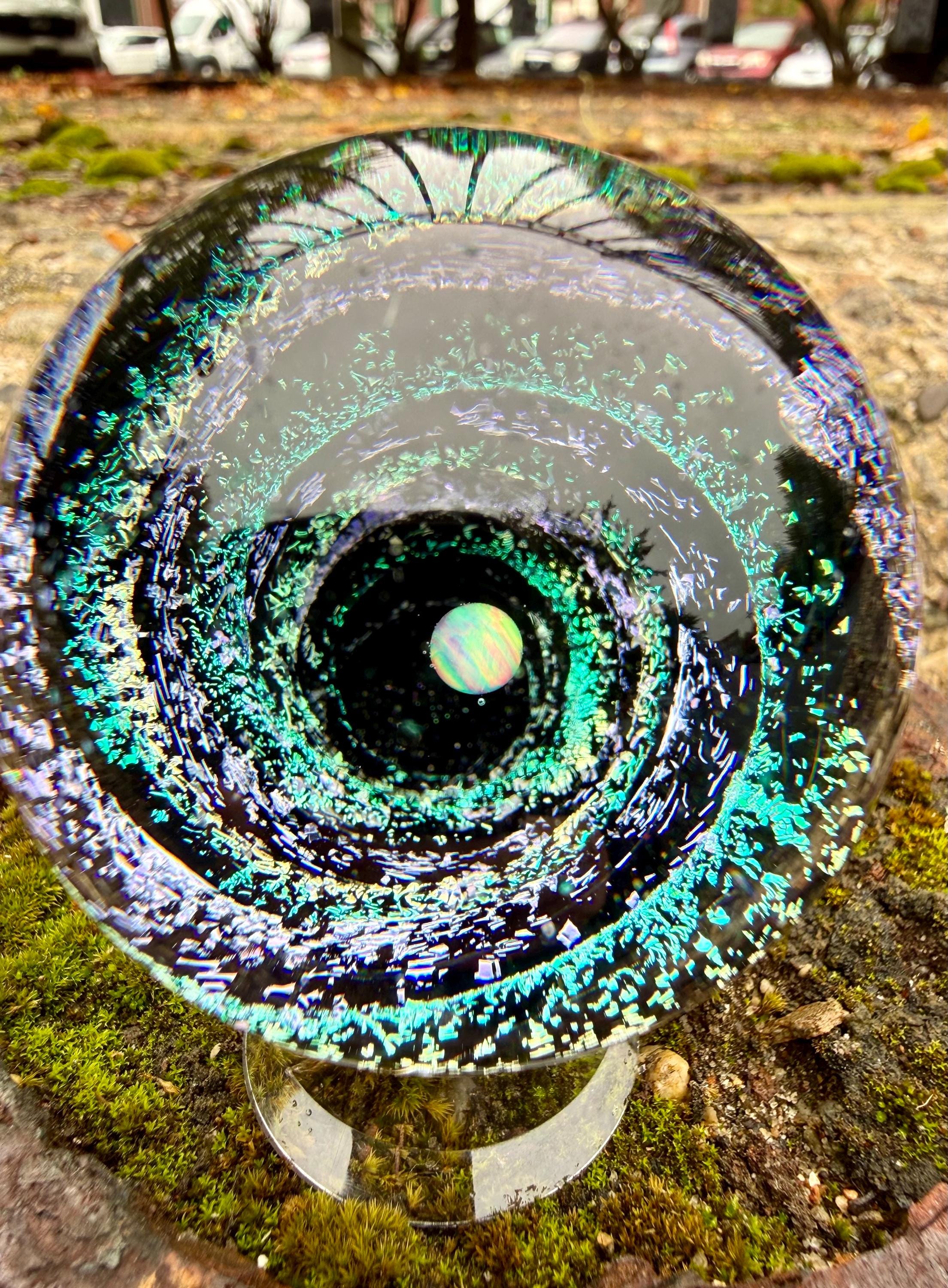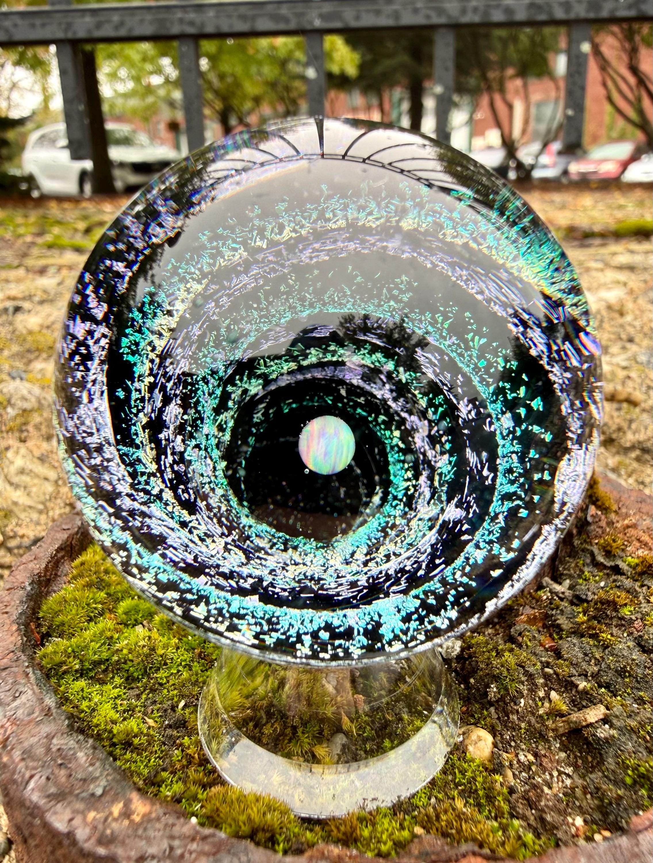 Purple/Aqua Dichroic Vortex Marble w/sphere opal